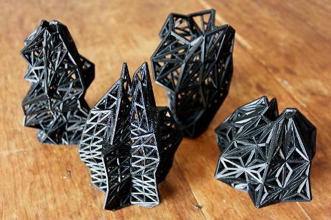 The 3D printed art of Marius Watz shows how data can be modelled in aesthetically appealing three dimensional form, and how the challenges of modelling complex arbitrary data can be met while still creating easily printed models. RIG’s experiments in 3D printed models of user data by distorting pre-existing forms Chernoff Face-style to display a as christmas tree decorations. We Can use these approaches and more (such as model mash-ups and extrusion of 2D sigils) to embody the intent of sigils rather than Web 2.0 data or random numbers in 3D printed form.